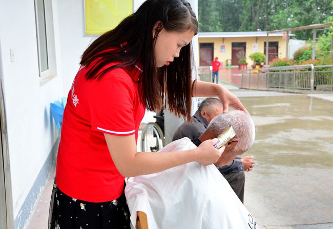 志愿者們趕到敬老院后便開始忙碌了起來,有的去擇菜洗菜,有的去包餃子,還有的幫老人理發(fā)、陪老人聊天,志愿者中的工程管理人員幫助老人檢修房屋。原本沉寂的敬老院頓時(shí)熱鬧了起來。志愿者們不但給老人們帶來了毛巾、洗發(fā)水等日常用品,更是親手給老人們送上了牛奶、粽子、香蕉等物品,給老人在夏日送去一絲清涼。最后志愿者看著老人們吃上了親手包好的餃子,大家都開心的笑了。