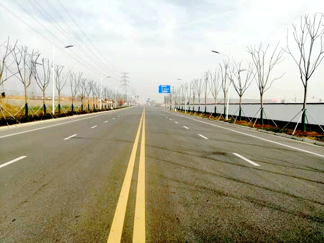 2019年工業(yè)區(qū)市政道路景觀綠化工程主要分為兩個(gè)標(biāo)段實(shí)施,實(shí)施范圍為古城路(莫干山大道—天柱山路)北側(cè)15米綠化帶,天柱山路(古城路—清水河)兩側(cè)人行道綠化帶和莫干山大道(青海湖西路—古城路)兩側(cè)綠化帶及人行道,總綠化面積約35000平方米,工程總投資約868萬元,主要種植為櫸樹、雪松、銀杏、欒樹、女貞、日本晚櫻、紅梅、垂絲海棠等喬灌木及紅葉石楠、金森女貞、夾竹桃、海桐等常綠灌木和金邊麥冬及草坪等地被類植物。