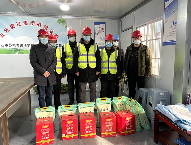 檢查后,在宿蘇外南北校區(qū)擴(kuò)建項(xiàng)目施工現(xiàn)場(chǎng),房建工程部向堅(jiān)守在一線的工人送去了食用油和大米,叮囑大家注意春節(jié)期間安全和疫情防控并表達(dá)了新春祝福,祝愿大家過(guò)一個(gè)平安祥和的春節(jié)。