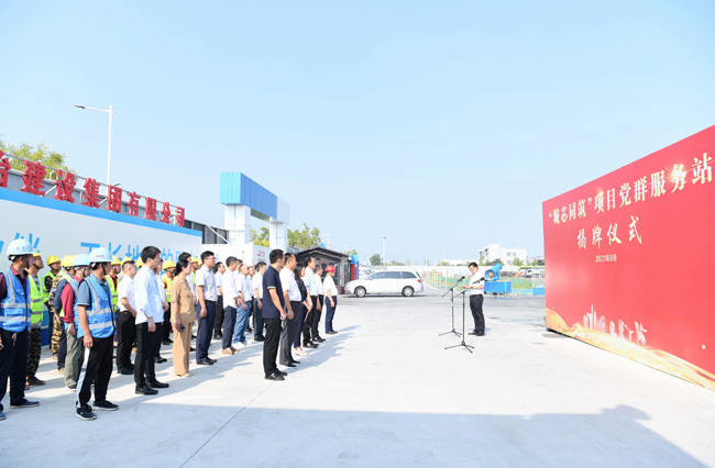 園區(qū)黨工委委員、管委會副主任崔廣全、張漢華共同為“城芯同筑”項目黨群服務(wù)站揭牌,開啟央企與地方企業(yè)黨建共建的美好開端。