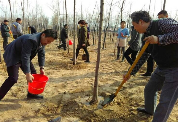植樹(shù)過(guò)程中,參加植樹(shù)的人員個(gè)個(gè)熱情高漲、干勁十足,他們幾個(gè)人一組,扶直樹(shù)苗、揮鍬培土、踩實(shí)壓緊,不時(shí)還向身邊的園林綠化技術(shù)指導(dǎo)人員討教樹(shù)木種植、養(yǎng)護(hù)知識(shí),整個(gè)勞動(dòng)場(chǎng)面繁忙而有序。