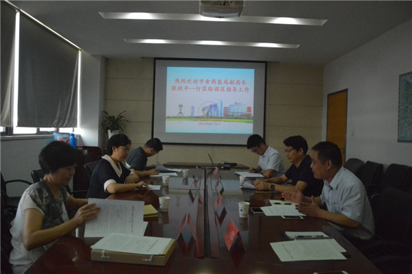 8月18日下午,市食品藥品監(jiān)督管理局副局長張桂平一行到園區(qū)調研文明餐飲創(chuàng)建工作。園區(qū)黨工委委員、管委會副主任戈亮參加了座談。